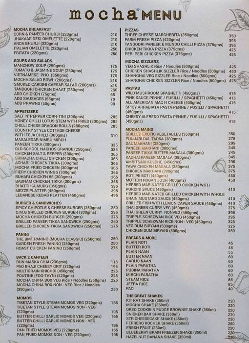 Mocha Menu Menu For Mocha Gulbai Tekra Ahmedabad